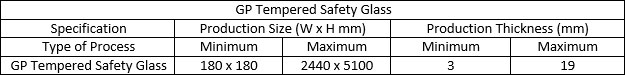 GP Tempered Safety Glass is supplied to comply with either of the following standards where specified: